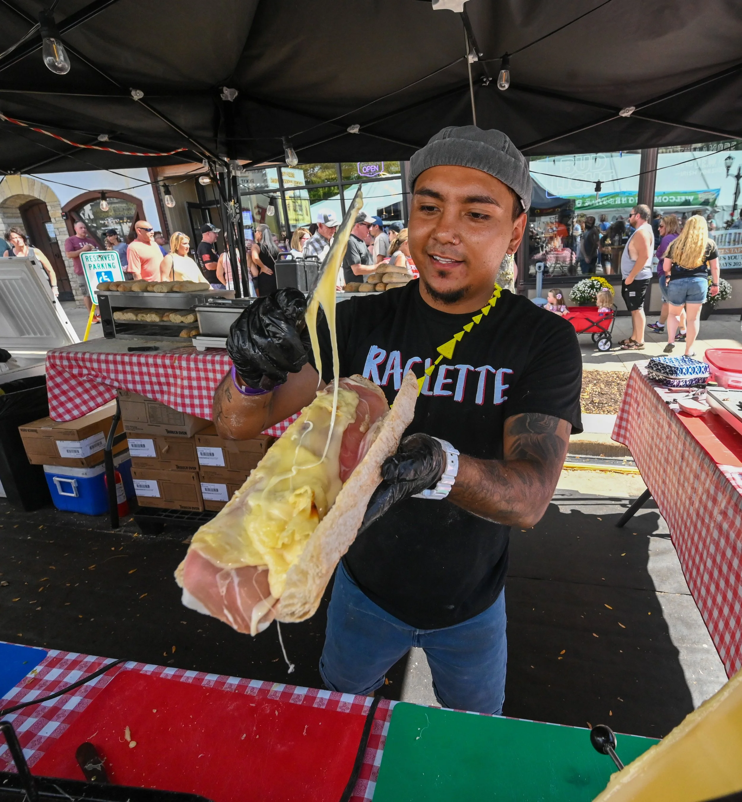 BAKED CHEESE HAUS – raclette, alpine brats, swiss dogs, grilled cheese on a stick.